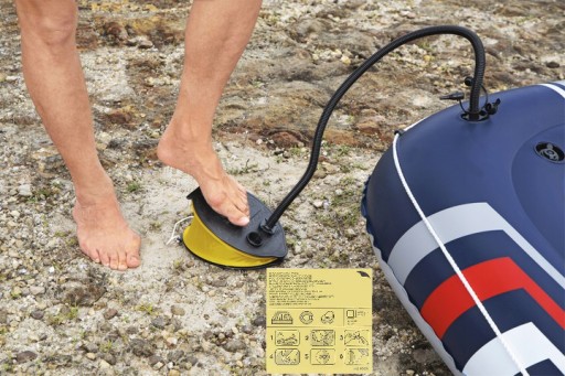 Ножний насос, що входить в комплект, забезпечить швидке і зручне наповнення повітрям трьох камер понтона.