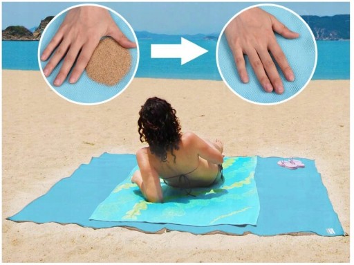 Спеціальний пляжний килимок, який проникає для піску, призначений для спокійного відпочинку, не струшуючи пісок. Це означає, що коли на ньому з’являються пісок, пил і дрібні частинки, ви можете позбутися їх одним рухом руки.