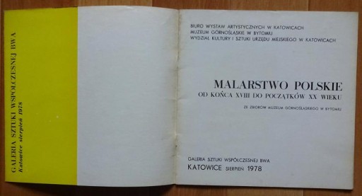 Привіт! Продам каталог картин: Польський живопис кінця 18-го до початку 20-го століття з колекцій Верхньосілезького музею в Битомі - виставка в Галереї сучасного мистецтва BWA в Катовіце, серпень 1978 р.; польською мовою. Стан хороший, як на фото, в комплекті. 20 сторінок + обкладинка. Відвідайте інші мої аукціони.