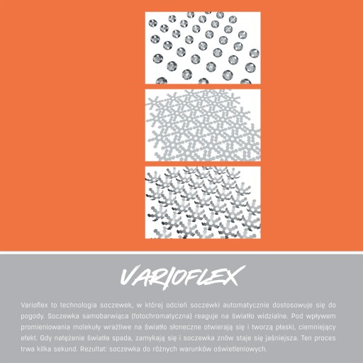 - VARIOFLEX - технологія Varioflex оптимально налаштовує відтінок лінз відповідно до умов освітлення (фотохром).