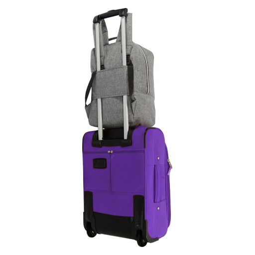 • На задній частині рюкзака є фіксатор, який дозволяє одягнути його на ручку валізи.