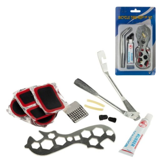 РЕМКОМПЛЕКТ ДЛЯ КОЛІС ВЕЛОСИПЕДА ГАЙКОВИЙ КЛЮЧ ПАТЧІ КЛЕЙ