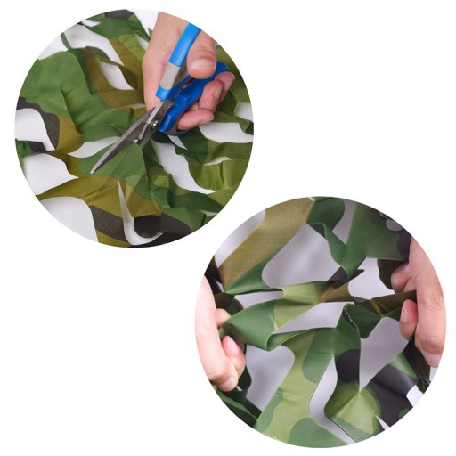 Маскувальна сітка фіксується нейлоновою мотузкою. Краї маскувальної сітки ми прошили та зміцнили, тому камуфляжна сітка має довший термін служби та зручніша у використанні.