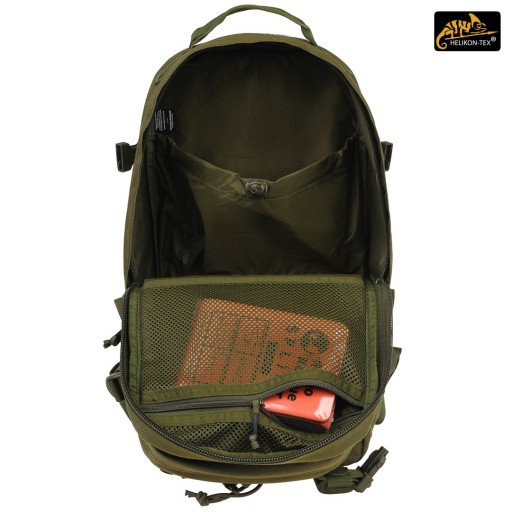Містке основне відділення дозволить упакувати спорядження для дводенної подорожі або тривалого патрулювання. Основне відділення з отвором 3/5 і двосторонніми блискавками гарантує легкий доступ до вантажу. Форма камери дозволяє упакувати більші речі, в ній можна розмістити ноутбук, літній спальник або формат А4 з великою кількістю місця. Всередині камери є велика сітчаста кишеня, що закривається на блискавку. Спеціальну кишеню для водяного міхура (система гідратації) можна використовувати як відділення для ноутбука. Закритий центральний порт дозволяє протягнути трубку верблюжої спини та розмістити її на одному з плечових ременів. У нижній стінці рюкзака є заклепаний дренажний отвір для зливу води зсередини камери.