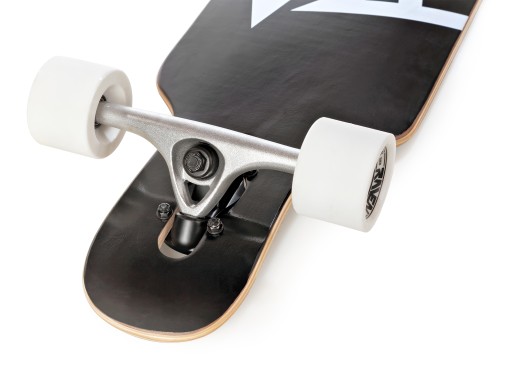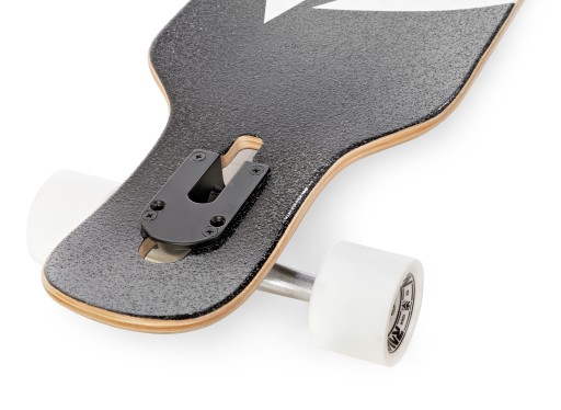 - Drop-Thru – гусениці, встановлені через спеціальний отвір у палубі, роблять її низько над землею. Це полегшує штовхання та знижує центр ваги, значно покращуючи стійкість дошки.