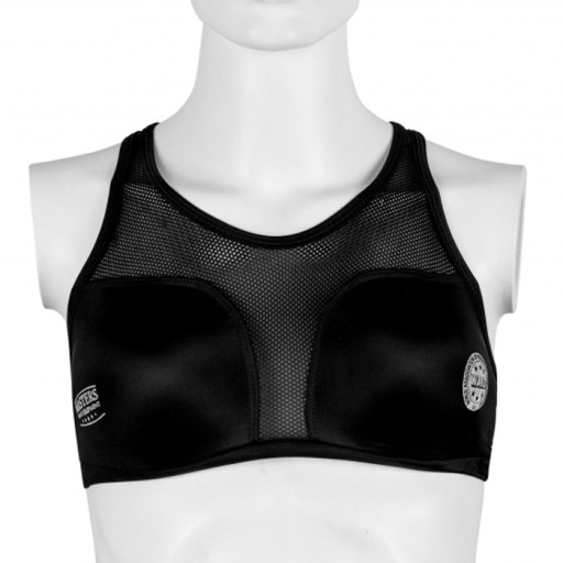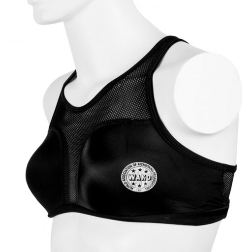 Жіночі нагрудники зі знімними вставками, які миються, призначені для тренувань і змагань з бойових мистецтв. Зручна гумка під бюстом дозволяє протектору ідеально прилягати до тіла. Протектор призначений для турнірних стартів - відповідає вимогам WAKO.