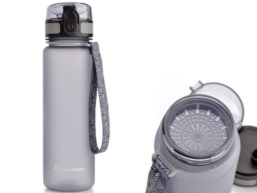 Практична пляшка для метеоритної води, яку ви можете взяти з собою на тренування, у спортзал, школу чи подорож на велосипеді. Пляшка прозора з матовим покриттям і нековзкою поверхнею.