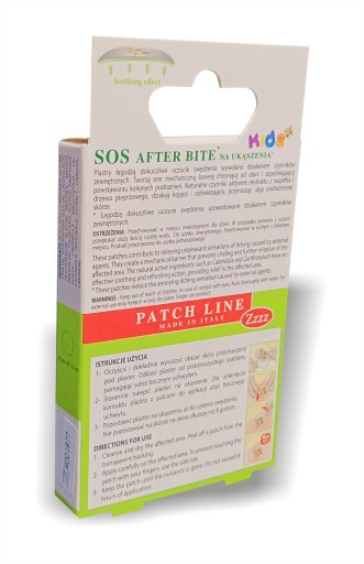 Пластирі від укусів SOS After Bite Kids — продукт найвищої якості від Path Line. Патчі знімають неприємне відчуття свербежу, спричинене, наприклад, укусом комахи. Вони створюють механічний бар'єр, який захищає від потертостей і запобігає подальшому подразненню. Вони містять натуральні активні інгредієнти, такі як календула і перець. Вони мають заспокійливу та освіжаючу дію, приносячи полегшення роздратованій шкірі. Вони не містять аміак і спирт. SOS After Bite Kids - це сучасні продукти, призначені для використання всією родиною. Вся продукція пройшла дерматологічні випробування, пройшла всі необхідні тести та є гіпоалергенною.