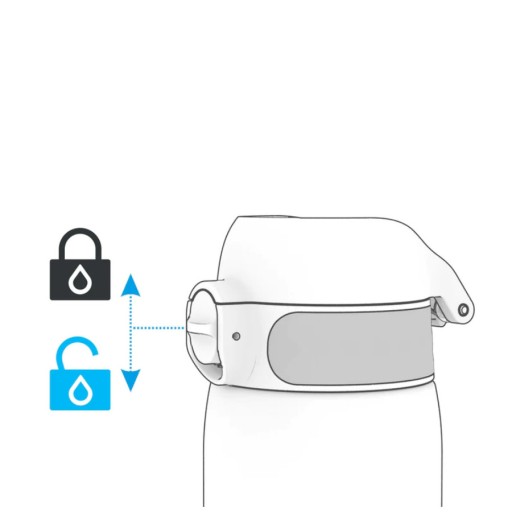 Пляшка для напоїв ION8 на 100% захищена від протікання та протікання. Після закриття м’який силікон повністю закриває мундштук і вентиляційний отвір. Запобіжний замок запобігає випадковому відкриттю при носінні в сумці або рюкзаку.