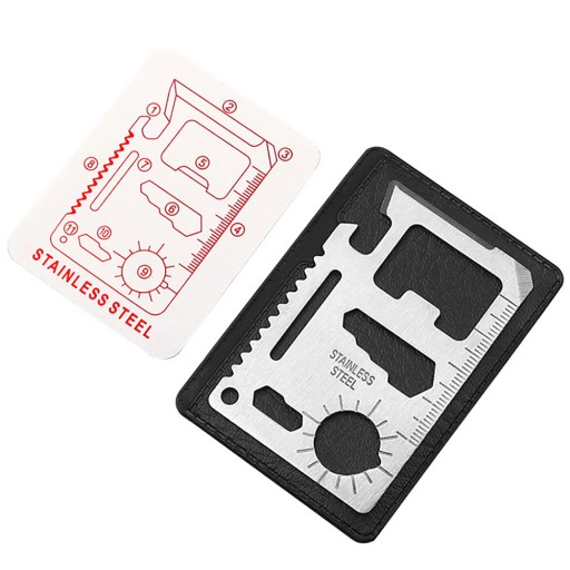 Карта виживання - це багатофункціональний інструмент, який завдяки невеликому розміру можна навіть заховати в гаманці! Карта має аж 11 функцій і дійсно стане в нагоді в екстрених ситуаціях. Картка виготовлена з нержавіючої сталі 420, її твердість 56-58HRC.