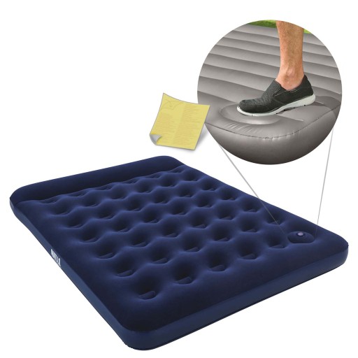 Туристичний двомісний матрац Bestway з вбудованим насосом, що легко надувається. Виготовлений з міцного матеріалу, зверху покритий ніжним темно-синім оксамитом. Підходить для використання як у приміщенні, так і на вулиці, ідеально підходить для використання під наметом.