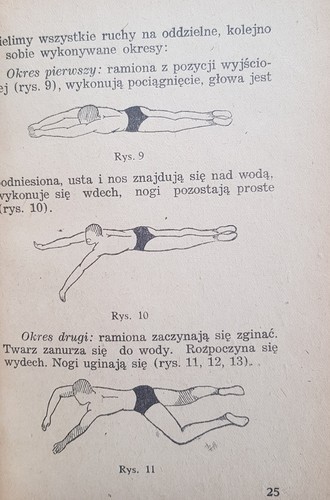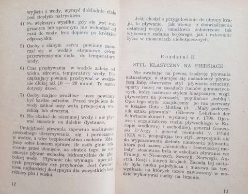 : Посібник для тренерів, спортивних інструкторів і вчителів з викладання плавання та підготовки до плавання, виданий відразу після Другої світової війни. Автор детально описує плавання брасом, на спині та батерфляєм, викладає принципи навчання початковому плаванню, описує методику тренування старту та повороту, наводить плани підготовчої, перехідної та основної підготовки. Все це багато ілюстровано малюнками, що показують вправи з плавання. Тираж книги: 10 000 примірників.