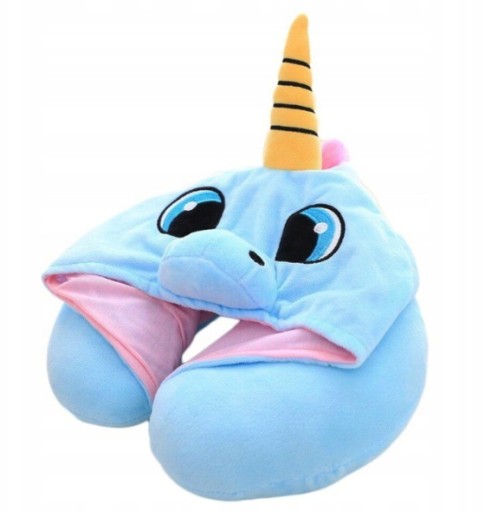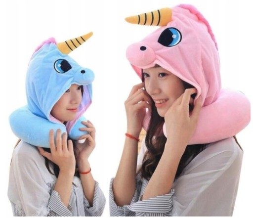 Наша дорожня подушка має милий мотив ЄДИНОРОГА з капюшоном, що значно покращує комфорт її використання ;)
