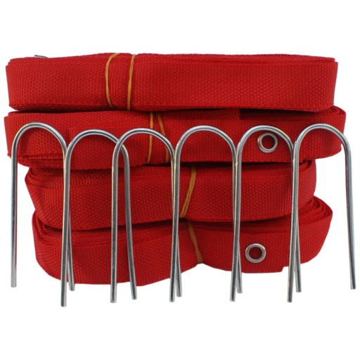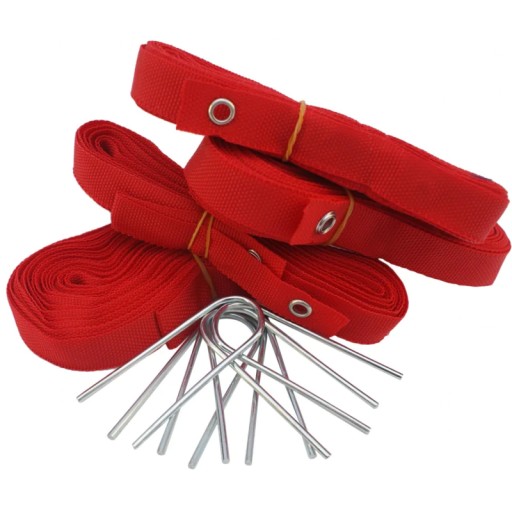 Набір мобільний, легко і швидко збирається - його можна брати з собою в подорож, тому що упаковка невелика і додатково входять кілочки для кріплення стрічок до землі.