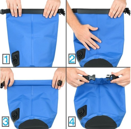 Поруч є інструкція щодо закриття сумки, яка захистить її від води, пилу чи снігу. Операція дуже проста. Все, що вам потрібно зробити, це загорнути сумку принаймні 3-4 рази та прикріпити затискачі, розташовані на протилежних сторонах сумки, і все готово!