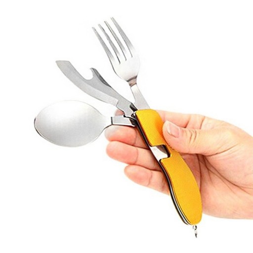 Необхідний кишеньковий ніж для подорожей — ніж із відкривачкою для пляшок, виделкою та ложкою, інтегрованими в один зручний кишеньковий ніж, який завжди можна мати при собі.