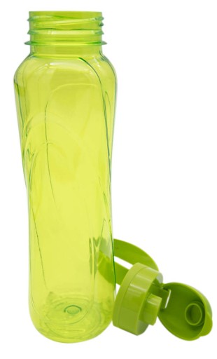 Пляшка виготовлена з пластику найвищої якості, не містить шкідливих речовин - BPA Free. Складається з трьох частин: контейнера, кришки і стрічки. Характерна форма - slim, забезпечує зручне утримання пляшки в руці. Ковпачок має отвір із прикріпленою стрічкою, яку можна легко замінити відповідно до ваших потреб, наприклад, за допомогою шнурка.