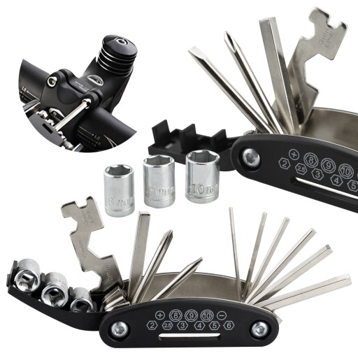 Кожен ключ виготовлений з високоякісних матеріалів, що гарантує їх довговічність і стійкість до пошкоджень. У набір входять, серед іншого, плоска та хрестова викрутки, рожкові ключі, шестигранні ключі, торцеві ключі та ключ зі спицями. Леза ключа виготовлені точно, що дозволяє легко та безпечно закручувати та відкручувати гвинти та гайки.