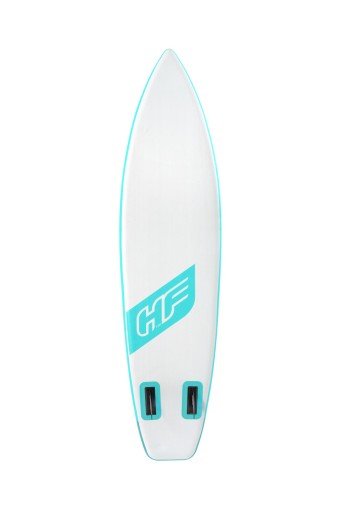 Дошка дуже зручна у використанні, її легко накачати за допомогою ручного насоса. Еластичні шнури ідеально підходять для транспортування, наприклад, ласт, маски або додаткового багажу... Завдяки дуже високій плавучості він може легко нести людину з максимальною масою тіла 110 кг (включно з багажем).