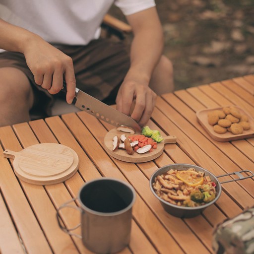 Багатофункціональний: зовнішня бамбукова обробна дошка, кришка для миски, круглий піднос для піци, піднос для кемпінгу та хліба, портативний