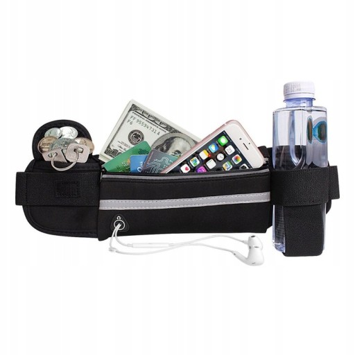Пояс також оснащений боковою кишенею для пляшки/пляшки з водою та додатковою кишенею, наприклад, для ключів.