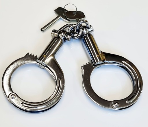 Професійні шарнірні наручники, які створені для обмеження діапазону рухів людини в наручниках до мінімуму. Оснащений подвійним замком. Товсті зварені ланки ланцюга неможливо зламати. Спеціальний замок з центральним штифтом запобігає відкриванню без ключа.
