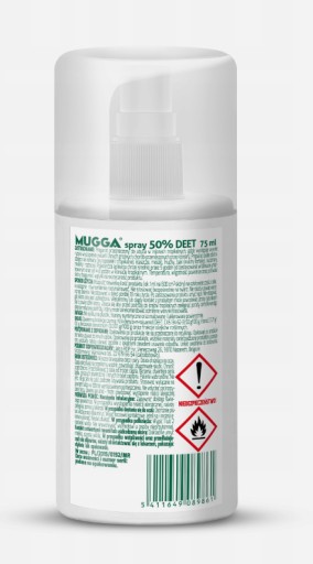 ✅ Mugga Spray не подразнює шкіру та не спричиняє забруднення, але його не слід наносити на порізи, рани чи подразнену шкіру. У разі нанесення на обличчя, спочатку збризніть руки, а потім розподіліть препарат по шкірі обличчя.