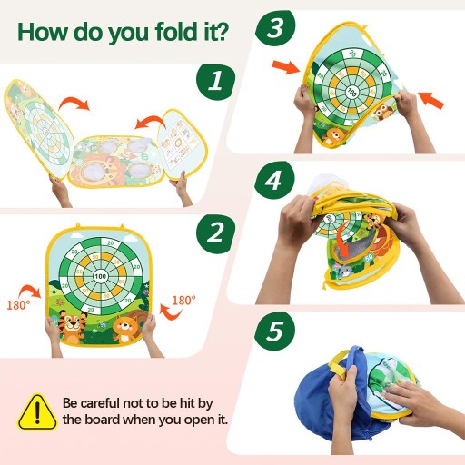 Ви отримаєте 1 мішок для зберігання, 1 щит від мішка з піском, 8, 4 цвяхи та 6 липких кульок, які підходять для дітей старше трьох років.