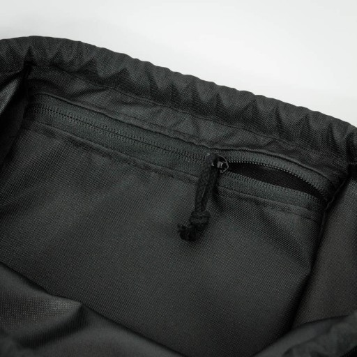 Наші спортивні сумки виготовляються в Польщі з компонентів найвищої якості. У цьому випадку ми використали товсту, просочену поліестерову тканину чорного кольору. Завдяки гідрофобним властивостям рюкзак не промокає під час невеликих опадів. Основне відділення сумки затягується бавовняним шнурком сірого кольору. Всередині безпечна кишеня на блискавці YKK. У нього легко помістяться: гаманець, смартфон, ключі та кілька інших дрібниць. Дно рюкзака укріплене стьобаною тканиною сірого меланжевого кольору.