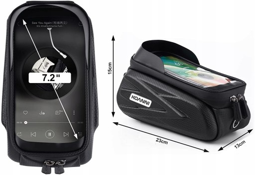 Місце для дрібниць, доступ до телефону, захист від дощу та бруду - це сумка на велосипедній рамі з тримачем для телефону. Його можна стійко закріпити на велосипеді, а у верхній частині можна розташувати телефон за плівкою. Ви матимете безперебійний перегляд екрана навіть під час водіння. Спеціальний сонцезахисний козирок захистить зір від відбиття сонячних променів. Що важливо, сумка дуже містка. У нього можна помістити багато корисних речей, наприклад, окуляри, мультитул або гаманець.