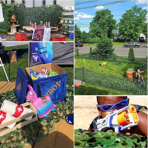 Камуфляжна сітка ідеально підходить для обробки навколишнього середовища декорацій на військову тематику, таких як декорації до фільмів, приладдя для святкування дня народження у світі юрського періоду, фони на армійську тематику, бари, декор спальні, ігри CS, страйкбол, ігри в пейнтбол тощо.