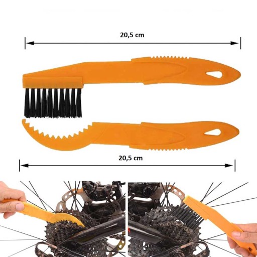 Практична щіточка для чищення ланцюга без необхідності його розбирання! Щітка має таку форму, що полегшує очищення ланцюга як зверху, так і знизу.