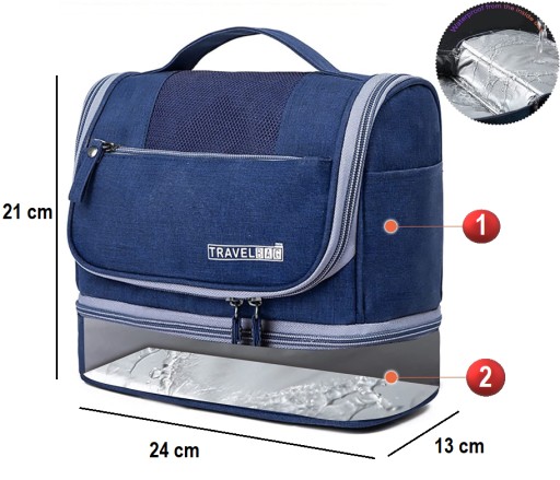 ✅Косметичка виготовлена з водонепроникного (бризко- та вологостійкого) поліестеру 300 D. Стане в нагоді кожному мандрівнику та домочадцю.У подорож ми зможемо взяти всю необхідну косметику, а вдома стане в нагоді органайзер Косметичка оснащена гачком, завдяки якому її можна підвісити і вона доступна під рукою користувача Також має вшиту ручку для перенесення Перевагою цієї косметички є два окремих відділення, одне з яких ( нижній) можна використовувати для зберігання мокрого рушника для обличчя або косметики, яка може пролитися, а спеціальний матеріал, яким він підкладений, запобігає витоку та намокання вмісту в основному (верхньому) відділенні косметички.