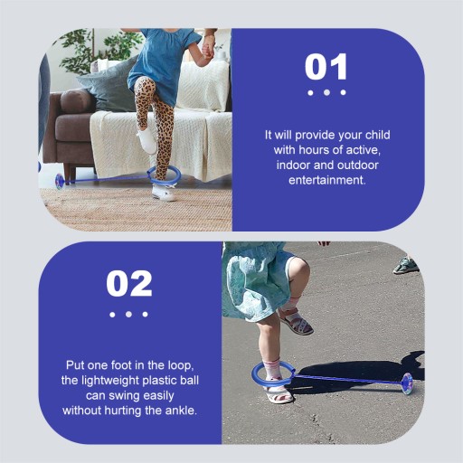 Діти можуть весело розважатися з цим стрибучим м’ячем годинами, цей стрибучий м’яч виготовлений з ПУ та ПЕ матеріалу, його потрібно надіти на одну щиколотку, а потім повернути вперед або назад. Завдяки світловому дизайну ви можете сподобатися дітям.