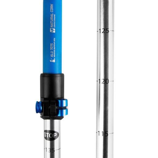 Завдяки своїй конструкції він дозволяє легко змінювати довжину палиці, не знімаючи рукавичок. Щоб заблокувати секцію, просто використовуйте важіль. Пряжки виготовлені з алюмінію, що значно підвищує міцність і довговічність системи блокування секцій палиці. Ми знаємо, наскільки важливим є зчеплення з трекінговими палицями, тому в Spokey COMPASS ми використали пробку в поєднанні з піною EVA. Завдяки цьому ручки характеризуються високою щільністю, м'які і приємні на дотик.