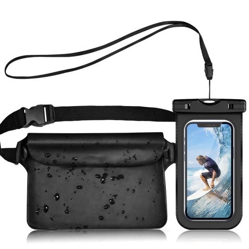 Водонепроникна наживна сумка з водонепроникною сумкою для мобільного телефону, регульованим ремінцем, водонепроникною кишенею для мобільного телефону для пляжу, плавання, катання на човні, водних видів спорту (чорна)