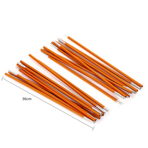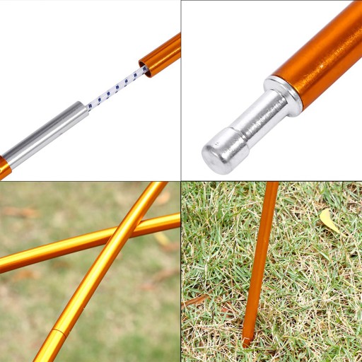 Цей набір стовпів для намету підходить для підтримки намету для кемпінгу на 2-3 особи або туристичного намету. Цей комплект стовпів для намету виготовлений з алюмінієвого сплаву з еластичним шнуром, який є міцним і стійким до корозії. Еластична струна забезпечує більшу гнучкість, тому її можна використовувати навіть у поганих погодних умовах без розриву. Економія місця та легкість у транспортуванні. Тому він ідеально підходить для занять спортом на відкритому повітрі, таких як кемпінг, походи, подорожі тощо.