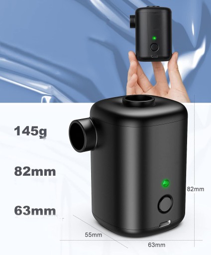 【Маленький бездротовий портативний пристрій】 Електричний повітряний насос можна використовувати не лише вдома, але й на пляжі, у кемпінгу та на відкритих заходах. Загальний розмір невеликий і вишуканий (5,5 х 6,5 х 8,2 см), і його можна легко покласти в рюкзак, коли він не використовується, без будь-яких додаткових навантажень. 【Довготривале живлення та зарядка через USB】Акумуляторна електрична повітряна помпа має вбудовану перезаряджувану літієву батарею ємністю 3000 мАг, яка може забезпечити довший час роботи. Крім того, в набір входить USB-кабель для зарядки, який можна заряджати будь-яким пристроєм з USB-інтерфейсом, що робить ваші літні подорожі зручнішими!