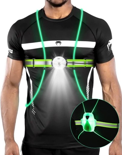 - 3 режими освітлення: інтенсивний, середній і переривчастий, забезпечують відмінне освітлення. Натисніть червону кнопку на нагрудному освітленні, щоб перемикатися між трьома режимами. Червона задня трикутна сигнальна лампа допомагає водіям бути помітними та, таким чином, забезпечує безпеку.