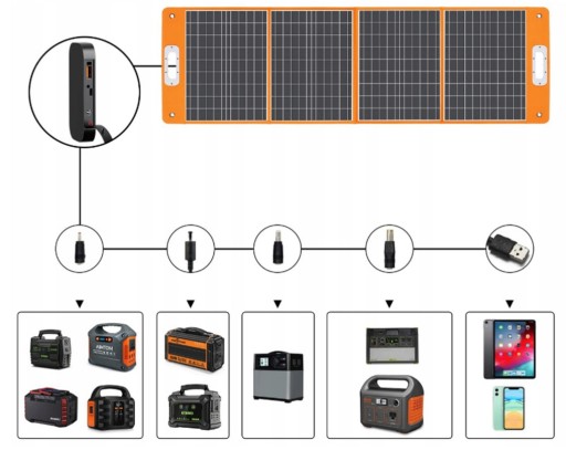 - Складана сонячна панель, оснащена 1 * портом провайдера USB-C (65 Вт) і 1 * портом провайдера USB-A (18 Вт), портом USB-C, що підтримує зарядку PD. Заряджайте кілька невеликих пристроїв одночасно, будьте готові заряджати смартфони та планшети (iPhone, iPad, Samsung Galaxy), GPS, камери ефектів тощо. Ідеально підходить для життя на природі та навіть для неочікуваних відключень електроенергії.
