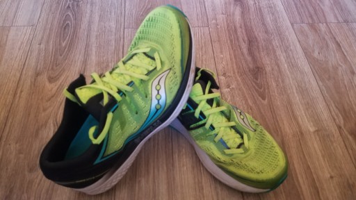 Продам кросівки Saucony модель Guide Iso 2. Стан видно на фото. Взуття дуже легке, з дуже хорошою амортизацією по всій довжині підошви. Посилений каблук і носок. Кольори в реальності більш яскраві та виразні, ніж на моїх фотографіях. Мають невеликий дефект у вигляді злегка потертого матеріалу за каблуком у правому черевику.