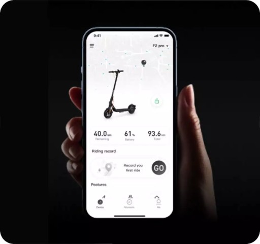 Користувачі пристроїв Apple успішно скористаються перевагами екосистеми Apple Find My і додадуть Ninebot KickScooter F2 Pro до цієї мережі. Ця зручність зробить пошук транспортного засобу Segway Ninebot набагато простішим і швидшим. Розташування скутера відображатиметься поруч з іншими сумісними пристроями, що значно спрощує інтеграцію та централізацію вашого обладнання.