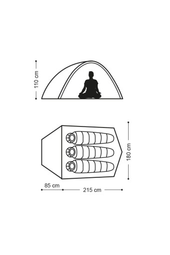 - Матеріал 20D нейлон, покритий силіконом (простирок, спальня, підлога) / сітка B3 (спальня) / пластикові аксесуари: каркас Duraflex: алюміній 7001