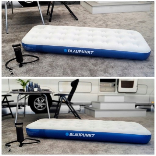 МАТРАС ЗБЕРІГАЄ СВОЮ ЗРУЧНУ ФОРМУ ЗАВДЯКИ ІНТЕГРОВАНОМУ КАРАСУ: Надувний матрац для двох осіб IM220 від BLAUPUNKT є ідеальним рішенням для кожної з перерахованих вище ситуацій. Розміри цієї моделі: 191 см х 137 см і вантажопідйомність до 295 кг точно вміщають двох дорослих або трьох-чотирьох маленьких дітей. Матрац висотою 22 см, покритий приємним на дотик оксамитом, забезпечує комфорт використання. Матрац зберігає зручну форму завдяки інтегрованому каркасу, який забезпечує його стабільність і відповідну еластичність.