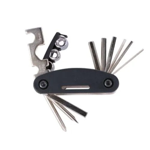 Цей багатофункціональний інструмент від Dunlop — це практичний, складаний інструмент із загартованої сталі, який не повинен бути відсутнім під час вашої велосипедної подорожі. Він має 15 корисних функцій і може зберігатися в закритій нейлоновій сумці.