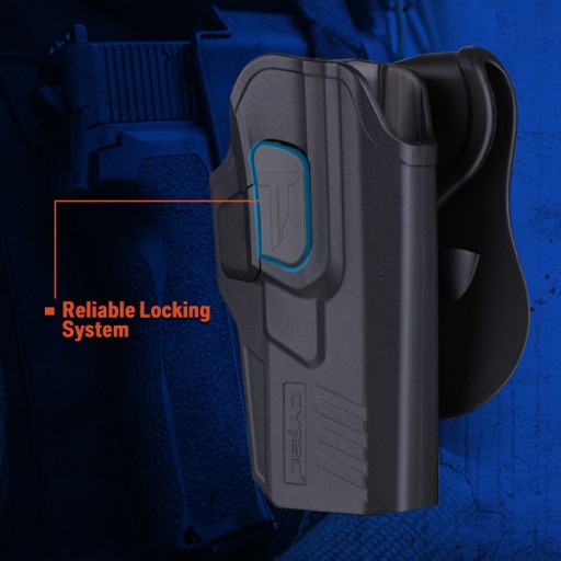 Пістолет автоматично блокується при розміщенні в кобурі. Він малюється за допомогою інтуїтивно зрозумілого замка, який відкривається за допомогою кнопки, легко доступної вказівним пальцем. Таке рішення дозволяє захистити зброю не тільки від втрати, але й від виривання з кобури, при цьому користувач має легкий доступ до неї та можливість швидко витягти пістолет.