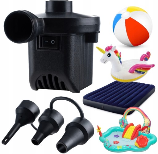 Електричний насос невеликий і зручний, призначений для надування та видалення повітря з різних предметів, наприклад, м'ячів, матраців, надувних подушок, понтонів тощо.