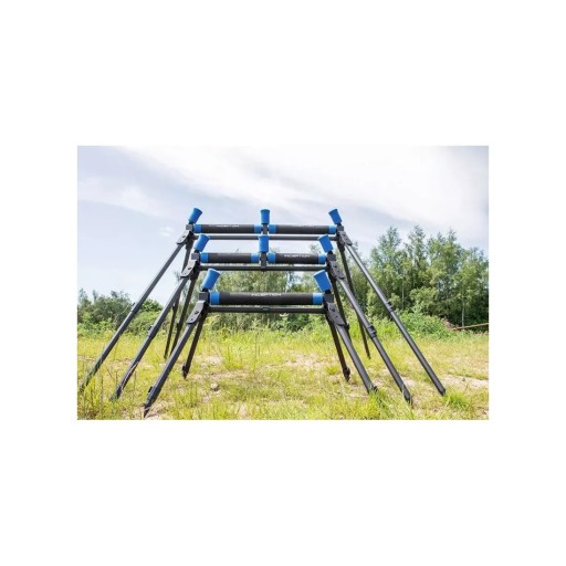 Кожна роликова опора оснащена новими безшумними кульковими підшипниками, що означає, що ви можете без зусиль рухати свою вудку вперед і назад, незалежно від її довжини. Вертикальні ролики прикріплені та розташовані під кутом, щоб вудилище залишалося на роликовій підставці навіть у вітряну погоду. Версії XL і Super XL оснащені вертикальним роликом посередині, тому ви також можете закидати вудилище секціями. Кожна роликова опора має окремий мішок для зберігання.