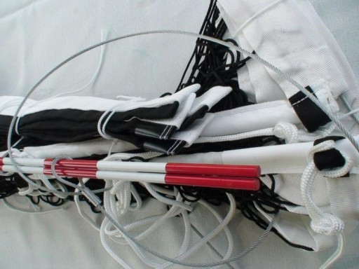 Натяг: Верх - сталевий трос, низ - поліпропіленовий трос 11,70 м, Армуюча стрічка - верх - 5 см. Чохол для прив'язаних антен + 2 антени.Сітка має сертифікат безпеки B