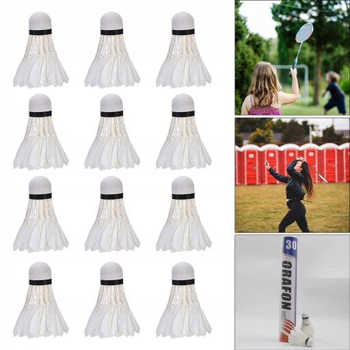 Волани для бадмінтону з гусячим пером, тренувальні пташки, 12 пробкових головок, білі
